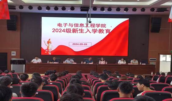 2024年9月9日,电子与信息工程学院党委书记桂放、院长闫万珺、副院长陈少波及全体辅导员、新生班主任、教务科教师为2024级全体新生开展入学教育,辅导员冯春杰主持会议。