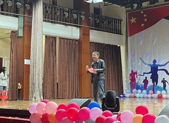 全场轰动,气氛很是活跃,尤其是高潮部分的互动环节,现场观众踊跃参与,不只是同学们,连老师也参与进来了呢,工作人员也送上了相应奖品。