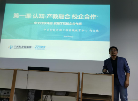 2020年10月13日晚上,中关村软件园教学运营总监何大伟来到安顺学院,会同庄中文院长、杨丽副院长开展计算机科学与技术专业、数据科学与大数据专业2020级新生入学专题讲座。