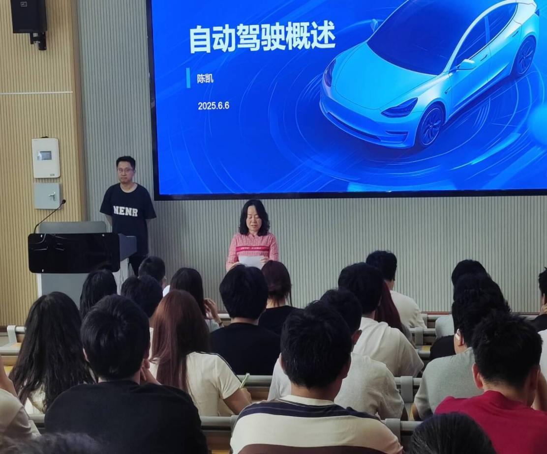 为拓宽师生学术视野、提升专业素养,于2025年6月6日14:30-16:00,电子与信息工程学院在顺理楼2-38成功举办自动驾驶概述专题讲座。本次讲座特邀北京理工大学陈凯博士作题为自动驾驶概述的专题学术讲座。会议由物电学院院长闫万珺主持,22级和23级电信专业班学生聆听讲座。