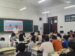 郭本华副校长围绕“学习贯彻习近平新时代中国特色社会主义思想主题教育、反诈防诈、心理健康”等三个方面上课。郭本华副校长带领同学们认识网络诈骗以及其蔓延的原因,通过真实案例教会同学们如何防范诈骗、远离诈骗以及被骗后的补救措施;提醒同学们注意安全防范,不在未知水域游泳,不参与打架斗殴,不使用大功率电器,做好个人卫生清净,不在公共场合携带危险易燃易爆物品,不吃来历不明、腐败变质的食物等;要保持身心健康,以积极乐观的态度面对学习和生活,有困难及时向班主任、辅导员反映。(图/文 陈波)