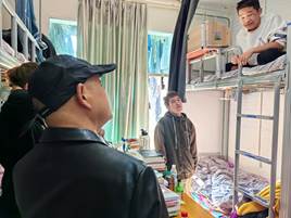 同时到我院各班级宿舍进行了走访,一是了解学生课后的学习生活;二是与学生进行面对面交流,了解学生思想动态;三是叮嘱学生注意防电信诈骗、警惕各类安全事故等。(图/文 陈波)
