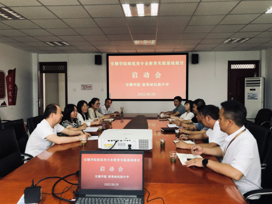 2022年6月29上午,电子与信息工程学院院长闫万珺一行到黄果树民族中学召开安顺学院教育实习基地建设启动会。黄果树民族中学校长张召启、副校长封支富、伍瑞金、龙彦宇、杨兴勇、教导处主任赵室润、实习基地建设负责人曾明贤出席启动会。会上,双方就实习基地建设标准、实习管理、实习基地建设经费拨付、实验室管理、实验教学技能竞赛、基础教育课题申报等问题进行了广泛深入的讨论,双方达成良好的愿景。为后期实习基地的规范建设和专业实习工作的规范开展奠定了良好的基础。电子与信息工程学院副院长杨丽、物理学专业负责人张春红、物理学教研室主任杨勇参加本次教育实习基地建设启动会。(文:杨勇 / 图:张春红)