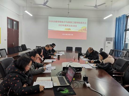 2023222日下午14:30时,电子与信息工程学院党委在顺理楼二楼电信学院会议室召开2022年度民主生活会,安顺学院党委委员第四督导组组长副校长郭本华、安顺学院党委第四督导组成员宋生琼列席了本次民主生活会,会议由电子与信息工程学院党委书记桂放同志主持。