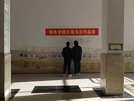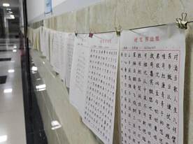 在现场比赛后,将80余幅比赛作品张贴展示在我院教学楼楼道,学生入目即见,旨在增强学习和传承中华优秀传统文化的氛围感,营造积极向上、清新高雅、健康文明的校园环境,引导学生了解中华优秀传统文化,激发学生的学习兴趣,主动学习和传承好中华优秀传统文化。(图/文 陈波)